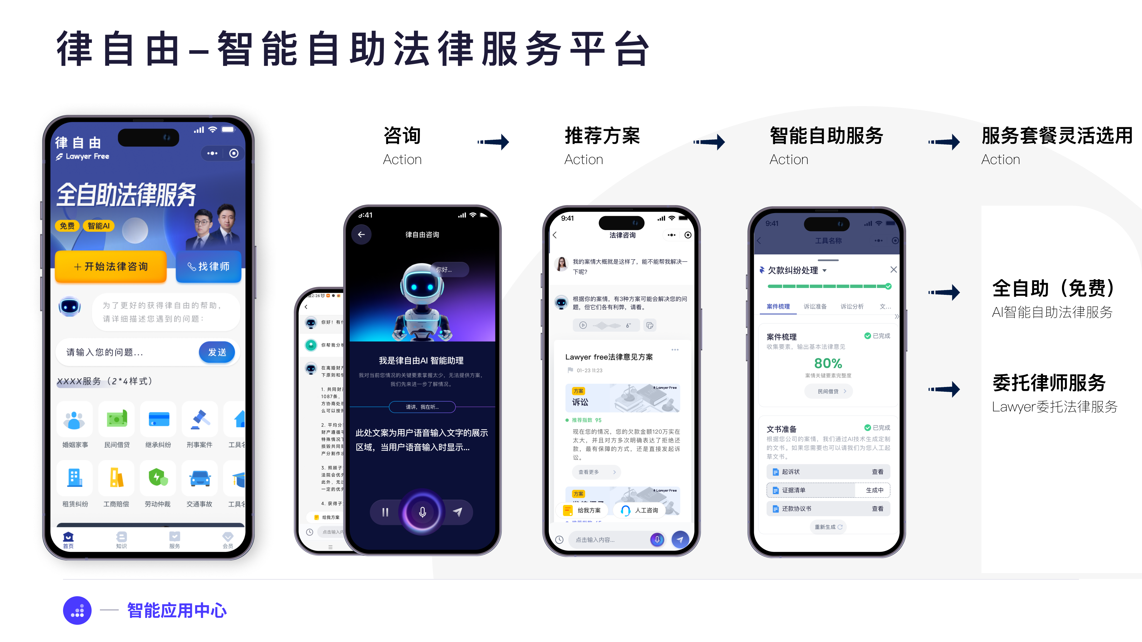 其中大模型在法律行业的应用效果尤其明显。核心原因在于法律行业高度依赖于律师的专业知识,以及复杂的案件梳理和分析能力,大量的文书起草工作,并且各地的法律服务要求也有差异之处。这导致了当事人面对诉讼的时候高度依赖律师的帮助。而人工智能技术的逻辑推理能力,以及海量的专业知识储备,强大高效的文书生成恰恰非常匹配法律服务的需要。在大模型技术的快速发展之下,律自由作为国内的首个全自助的法律服务平台,完美的承担了律师的作用。使当事人可以轻松的使用人工智能技术应对自己的法律问题。